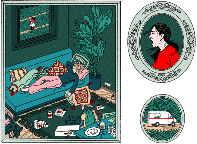 Мама колотит в дверь. Ор стоит на всю лестничную площадку. Катя встаёт с дивана, чуть не складывается пополам от боли и тащится открывать. На неё обрушивается град обвинений, в котором можно различить только обрывки фраз: «ты чего не моешься», «да ты что с собой делаешь» — и, наконец, привычное и знакомое «тунеядка». Она слышит это последние лет десять, если не больше. Когда мамы нет рядом, голос в голове Кати монотонно отстукивает это слово: «Тунеядка. Тунеядка. Тунеядка». Голос тоже смутно похож на мамин.