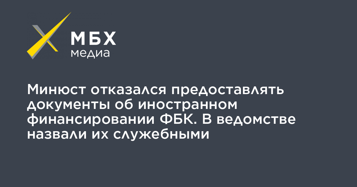 Минюст отказался предоставлять документы об иностранном финансировании Фонда борьбы с коррупцией, заявив, что эта информация находится под грифом «Для служебного пользования». Об этом сообщил «МБХ медиа» директор ФБК Иван Жданов.
