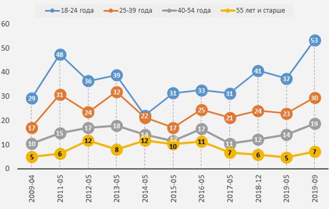 - В феврале 2019 года о нежелании уезжать за границу «Леваде» говорили 60% опрошенных, что стало максимумом за семь лет.
