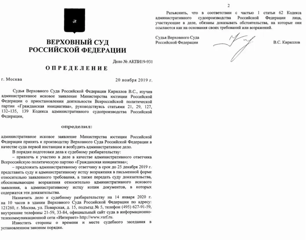 Сообщение об иске появилось на странице основателя партии Андрея Нечаева в фейсбуке. Согласно уведомлению от Верховного суда, заседание назначили на 14 января. Как рассказал Нечаев «Новой», содержание иска пока еще неизвестно, но вопросы у министерства к партии возникают не в первый раз. При этом раньше они носили формально-бюрократический характер.