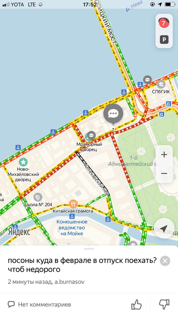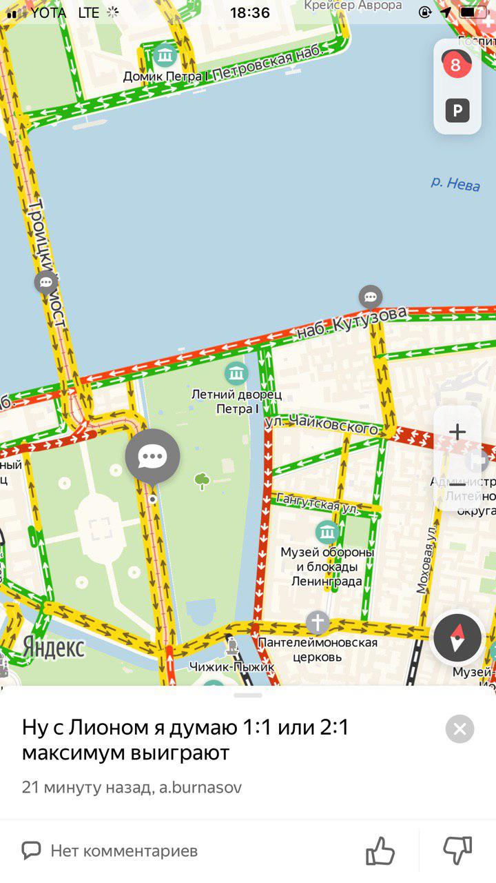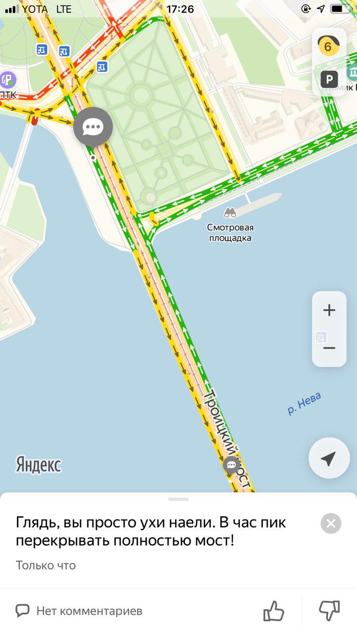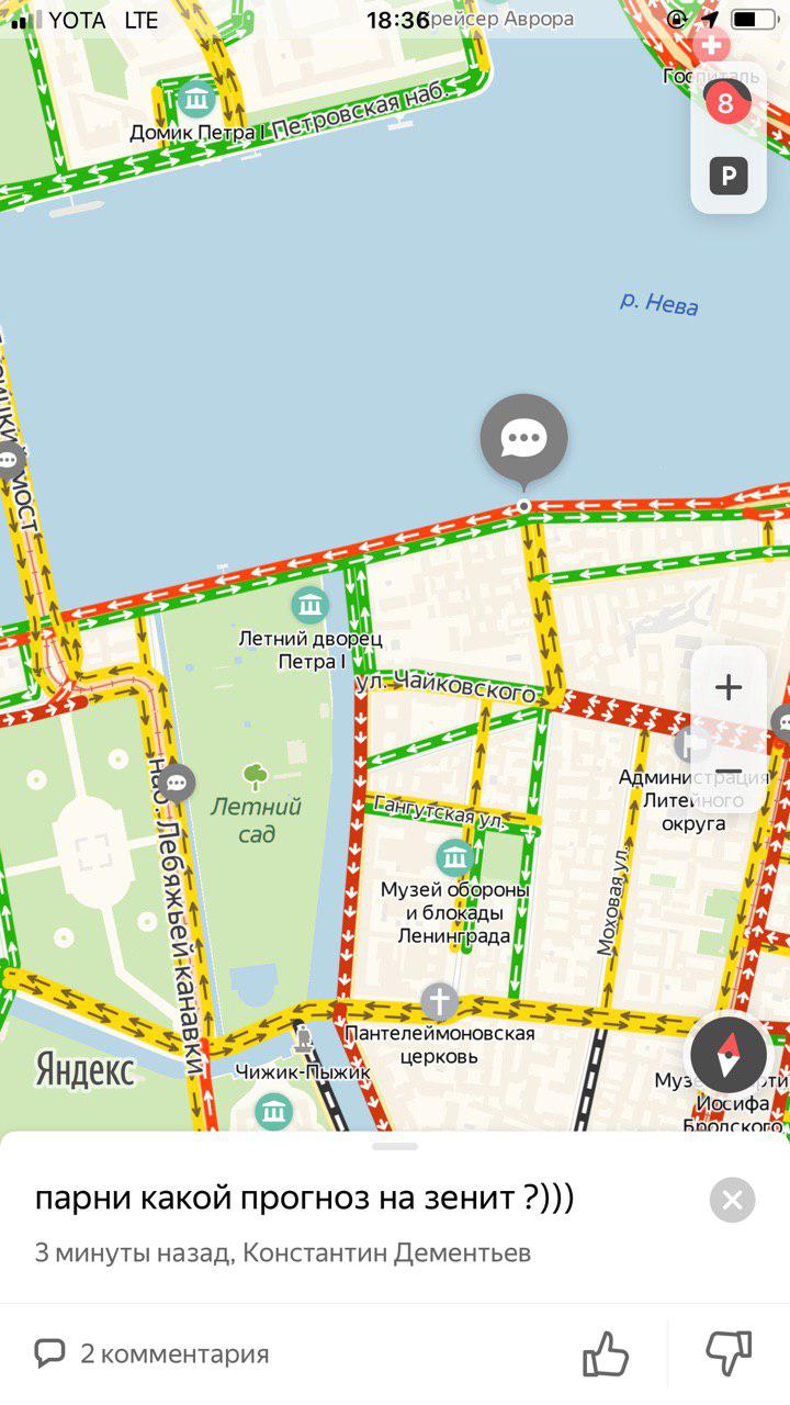 Из-за приезда Путина водители весь день стоят в пробках — днем перекрывали часть КАД и въезды со стороны Рыбацкого и Софийской улицы, Дворцовый и Троицкий мосты, а в 18:40 сервис «Яндекс.карты» оценивал пробки в городе в восемь баллов.