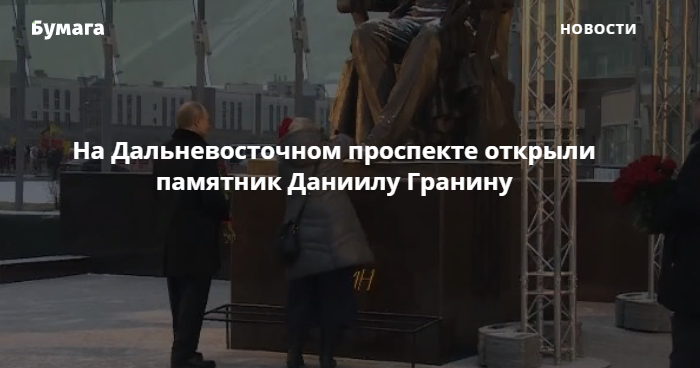 В Петербурге 27 ноября открыли памятник писателю Даниилу Гранину. В торжественной церемонии принял участие президент Владимир Путин. Он возложил цветы и выступил с короткой речью, пишет «Фонтанка».