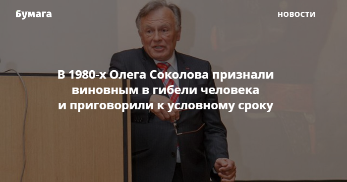 Историка Олега Соколова, обвиняемого в убийстве аспирантки СПбГУ Анастасии Ещенко, ранее уже судили. В 1982 году его признали виновным в нарушении правил безопасности, сопряженном с гибелью человека, и приговорили к условному сроку. Копию приговора опубликовала «Фонтанка».