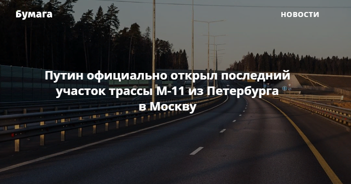 На церемонии Путин заявил, что в истории России «ничего подобного не было», подразумевая, что это первая дорога между Петербургом и Москвой, построенная от начала и до конца в постсоветский период.