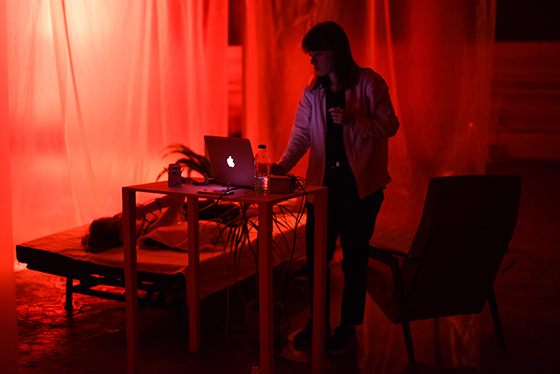 Мария Молокова: Да, изначально я училась на визуального художника, профессионально занималась графикой, а потом что-то щелкнуло — и я полностью переключилась на звук. Глаза, как мне кажется, очень часто обманывают человека. Визуальное — узкая сфера, которая сильно ограничивает нас как зрителей, как художников. Поэтому мне было интересно попробовать какие-то другие формы сенсорного аппарата, и аудиальное показалось наиболее честным и интересным. К тому же было интересно развиваться с точки зрения технической, научной части. Я, наверное, больше эмоциональный человек, чем рациональный, но всегда хотелось раскрыть и свою рациональную часть. Звук как раз охватывает обе категории — и научного, и чувственного. Естественно, очень сильно повлияли на меня занятия в школе Родченко, где удалось глубже погрузиться в эту тему и приступить к практике. Это не классическая звукорежиссура, а, скорее, «природное» отношение к звуку: умение слушать, слышать и вычленять для себя новые феномены.