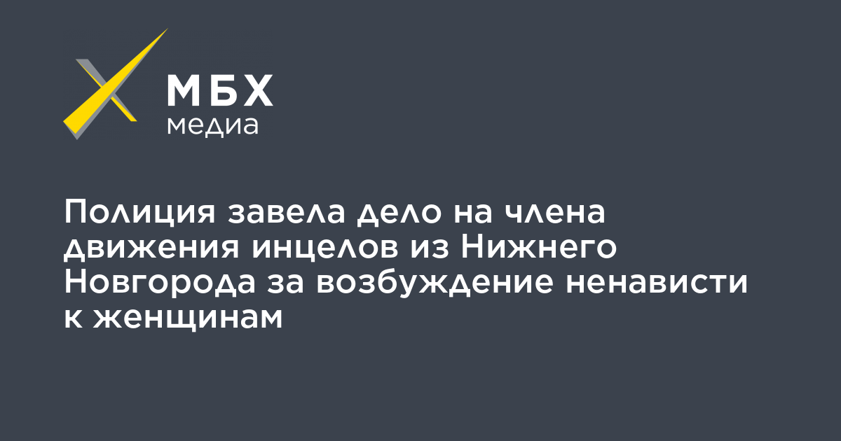 Полиция завела дело на члена движения инцелов из Нижнего Новгорода за возбуждение ненависти к женщинам