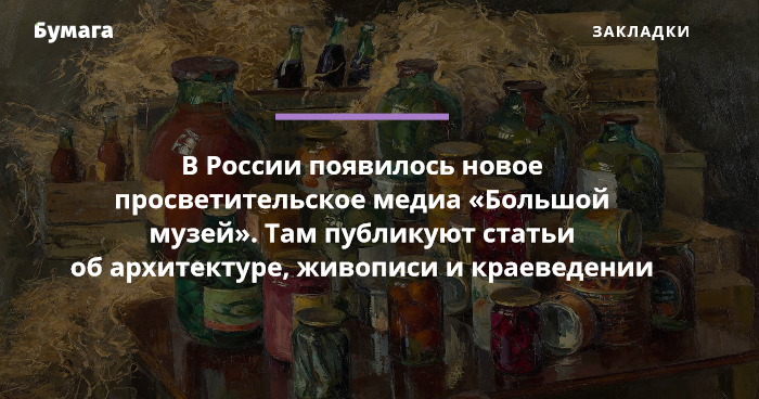 В России запустили новое просветительское медиа «Большой музей», которое рассказывает о живописи, скульптуре, архитектуре и краеведении. Сайт создали при поддержке издательства «Яндекса» и Политеха.