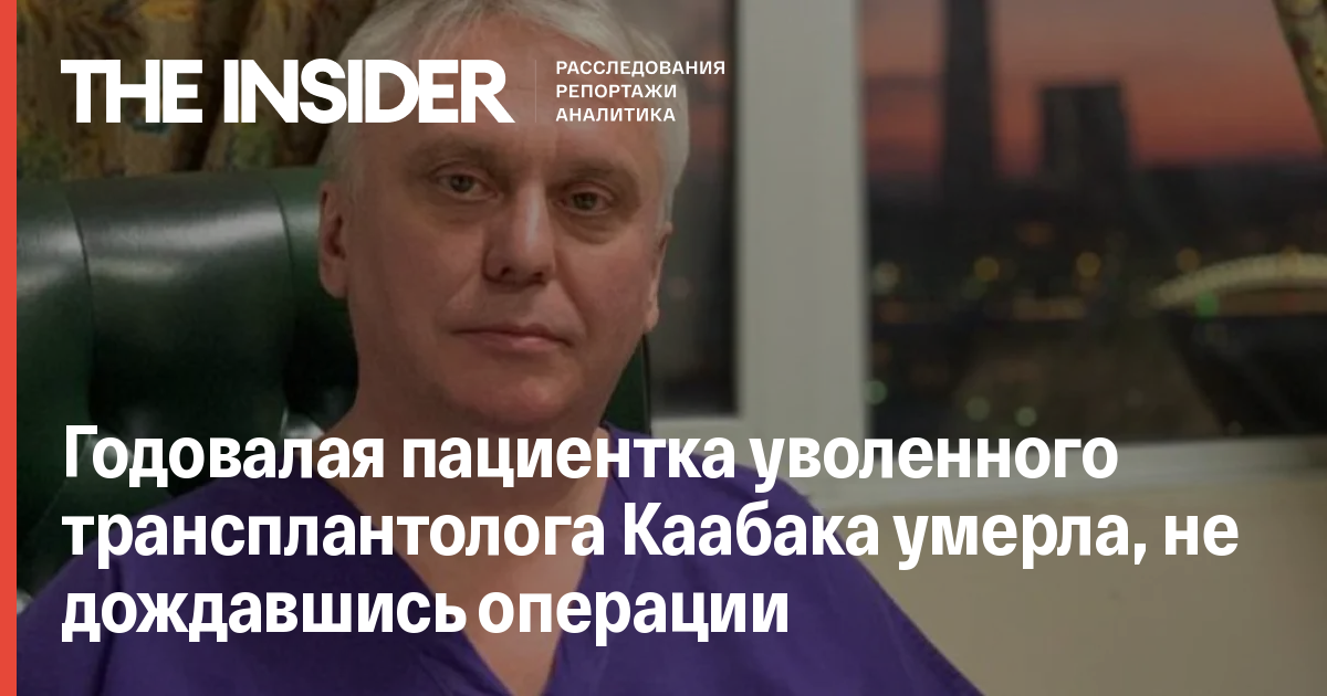 Умерла годовалая пациентка трансплантолога Михаила Каабака, которого ранее уволили из Национального центра здоровья детей (НЦЗД), но позднее восстановили в должности. Об этом пишет «Коммерсантъ» со ссылкой на главу инициативной группы родителей пациентов Каабака Марину Десятскую.