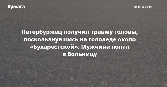 По информации издания, утром 28 ноября 56-летний петербуржец упал возле дома, в котором находится вестибюль метро. Мужчину госпитализировали — медики диагностировали у него закрытую черепно-мозговую травму.