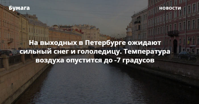 В ночь на воскресенье температура воздуха опустится до −7 градусов, а днем будет варьироваться от −1 до −3 градусов. Кроме того, на дорогах города образуется гололедица с толщиной льда от 1 до 6 мм.