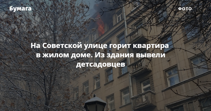 Днем 2 декабря в жилом доме на 8-й Советской улице, 6–8 на пятом этаже загорелась квартира, сообщает пресс-служба МЧС. Очевидцы говорят, что слышали хлопок перед возгоранием.