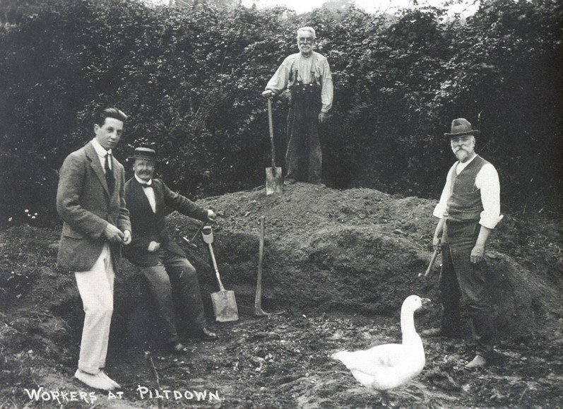 Новые технологии позволяют разоблачать фальшивые находки, подделки. Например, именно благодаря новым методам исследования был разоблачен Пилтдаунский человек — одна из самых известных подделок в истории антропологии: череп, который выдавали за останки предка человека. Он был найден в 1912 году, но в середине XX века вскрылось, что это подделка — челюсть человека и череп орангутана соединили, подпилили и подкрасили. Узнать это удалось благодаря использованию радиоуглеродного анализа, только что изобретенного.