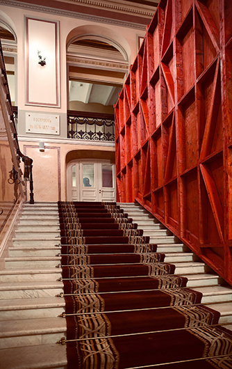Филановский: Я решил вывести публику за пределы Фанерного театра, а музыкантов поместить внутрь. И предложить публике двигаться вокруг по фойе. То есть постоянно менять точку слуха. Чтобы подчеркнуть этот контур, я равномерно рассредоточил хористов снаружи по периметру Фанерного театра. Они — как бы тихие холодные стражи внутренней инструментальной магмы. Она выплескивается в разные части Фанерного театра не одновременно: с каждой точки вы можете услышать только ее часть, которая подобна другим частям, но заметно отличается от них и сама по себе, и по месту в пространстве; чтобы попытаться охватить происходящее целиком, вы должны перемещаться. То есть «сама музыка» находится в абстрактном звуковысотном и временном движении, а слушатели — в физическом. Надеюсь, такая интерференция осложнит и расшатает равенство автора и опуса самим себе, о котором я говорил раньше. И будет соответствовать неопределимости самого Фанерного театра.