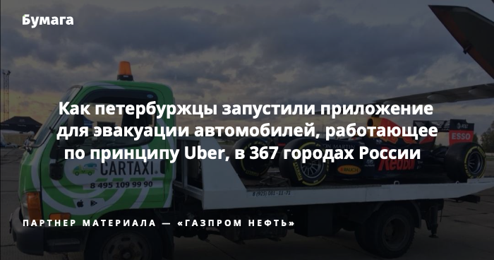В 2016 году команда петербургских разработчиков создала мобильное приложение CarTaxi для эвакуации автомобилей — с умной тарифной сеткой и интерфейсом, напоминающим Uber и «Яндекс.Такси». Спустя три года приложением стали пользоваться в 367 городах России, а заказы принимают более 7 тысяч водителей эвакуаторов.