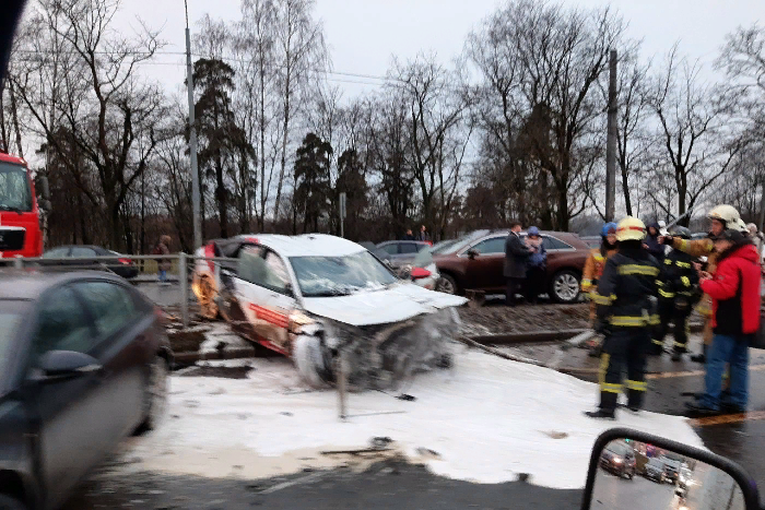Рядом с «Озерками» Audi врезался в Mercedes, а затем еще в 11 автомобилей. Пострадали два человека