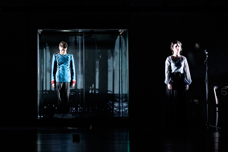 © Gianmarco Bresadola Стеклянный бокс на арьерсцене, превращающийся то в музейную витрину (с военным мундиром), то в вагон поезда, становится последним пристанищем «лейтенанта из прошлого». На экран-задник (где весь спектакль проплывали облака, мелькали старинные фотографии, пейзажи и крупные планы актеров) проецируются кадры военных действий, деревья чернеют и растекаются в грязь, солдаты идут в штыковую атаку, разлетаются осколки. Из-под музейной стеклянной витрины текут потоки красной крови. Телеграмма со словами любви и преданности не доставлена по адресу. Потому что началась Великая война — перебои со связью. Исправить ничего нельзя, прощения не будет, вина останется вечной. ХХ век и две его мировые войны отменяют самоё идею «связности». Кадры на экране стремительной монтажной скороговоркой проговаривают дальнейшую хронику событий (мелькнут свастика, руины городов, демонстрации протеста, кажется, лодка с беженцами, что-то еще) — «дальше вы знаете»: дальше наступит время недоставленных телеграмм, разрыва всех и всяческих связей, неизбывной вины — и нового искусства, которое научится действовать на зыбкой территории полной неопределенности. А в начале было чье-то разбитое сердце. В начале всегда оно.