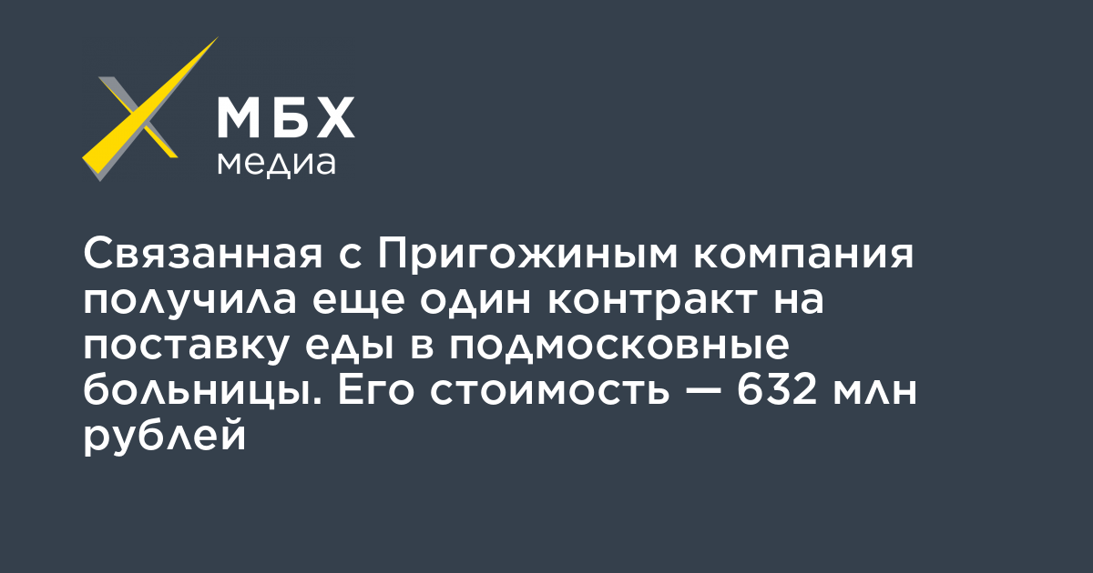 Связанная с Пригожиным компания получила еще один контракт на поставку еды в подмосковные больницы. Его стоимость — 632 млн рублей