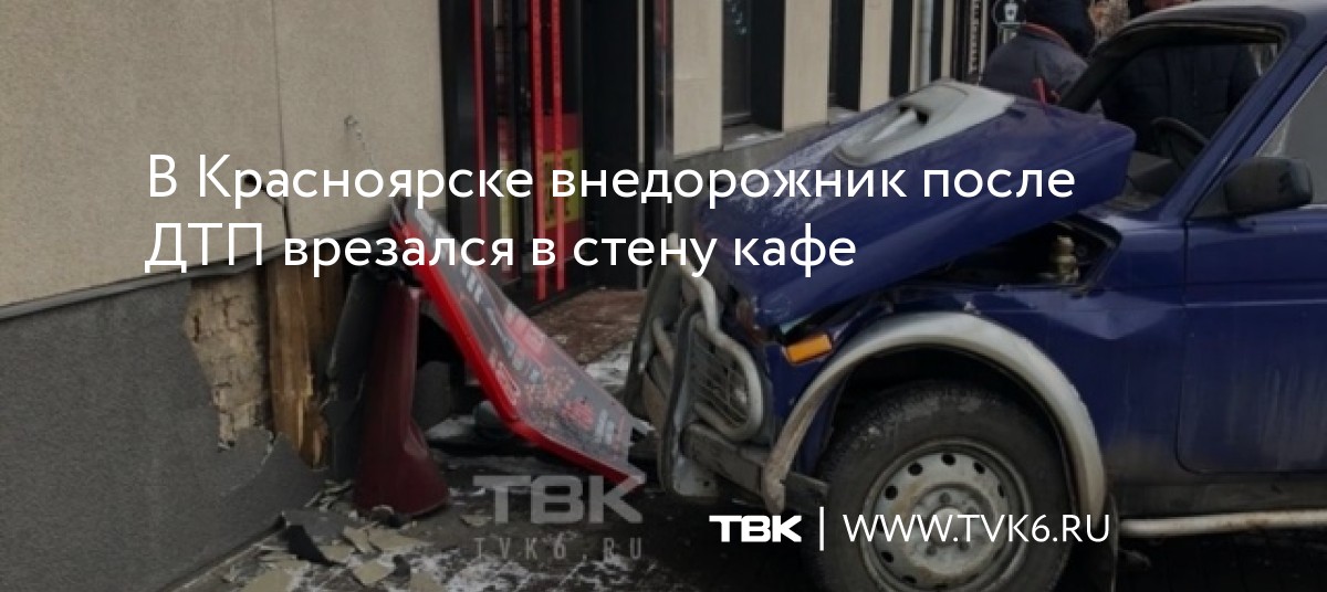 В Красноярске внедорожник после ДТП врезался в стену кафе