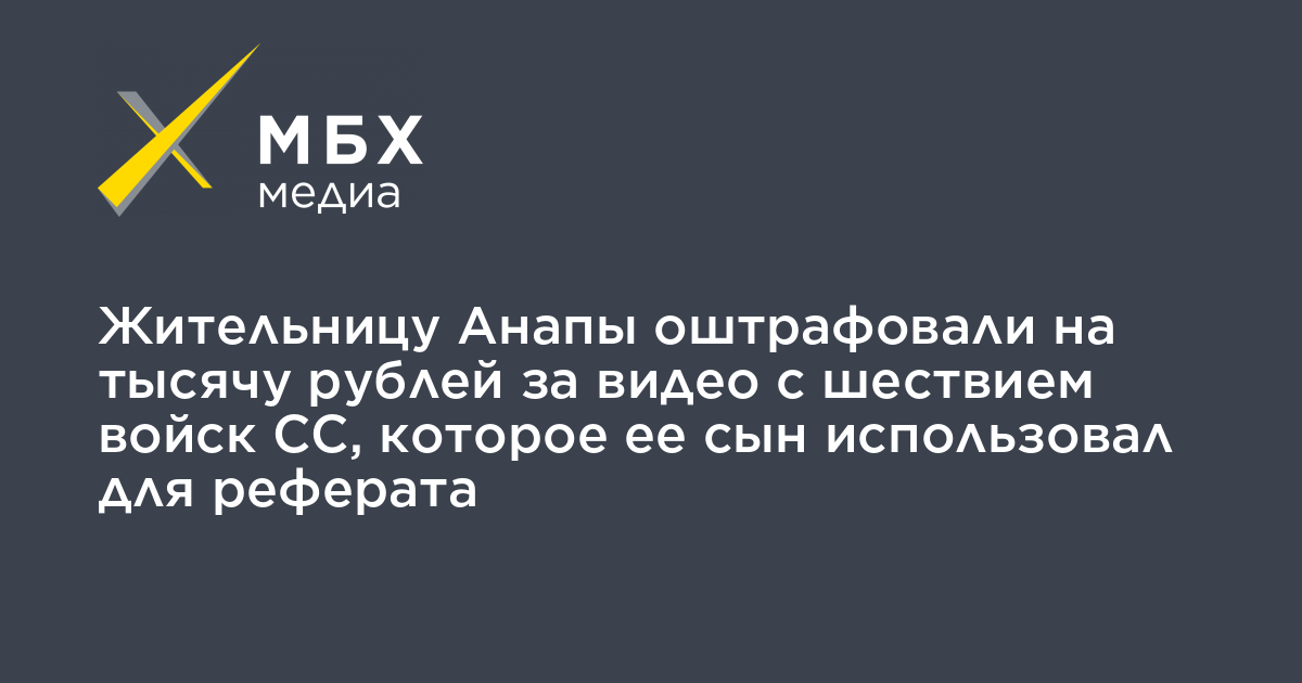 Анапский городской суд оштрафовал на одну тысячу рублей местную жительницу М. Молодину за публикацию во «ВКонтакте» видеозаписи шествия войск СС. Соответствующее постановление «МБХ медиа» обнаружило в картотеке суда.