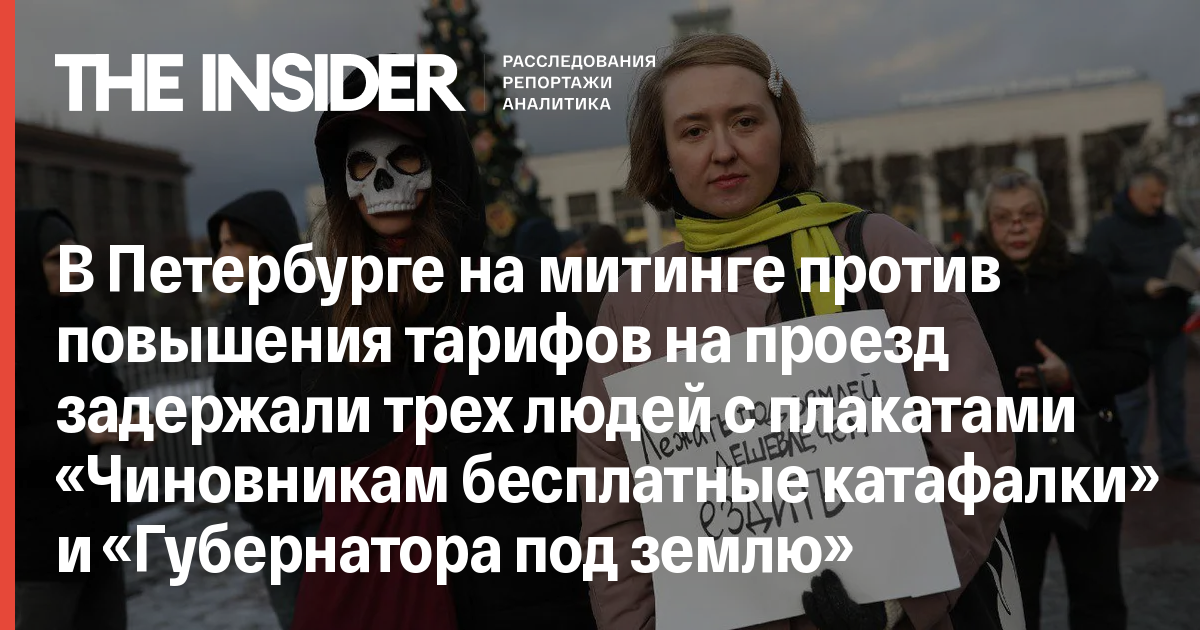 В Петербурге на митинге против повышения тарифов на проезд задержали трех людей с плакатами «Чиновникам бесплатные катафалки» и «Губернатора под землю»