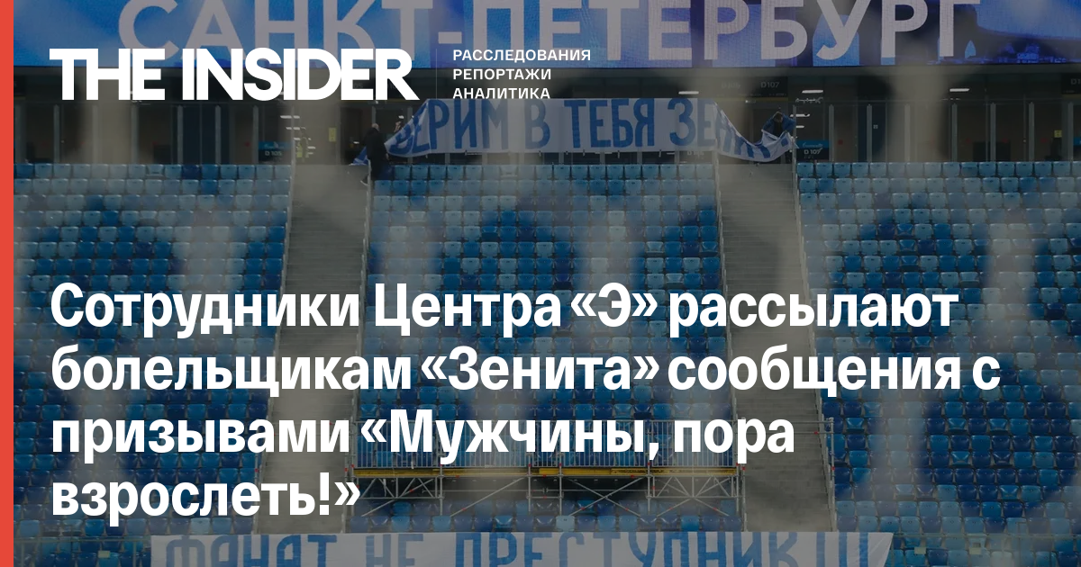 Сотрудники Центра «Э» рассылают болельщикам «Зенита» сообщения с призывами «Мужчины, пора взрослеть!»