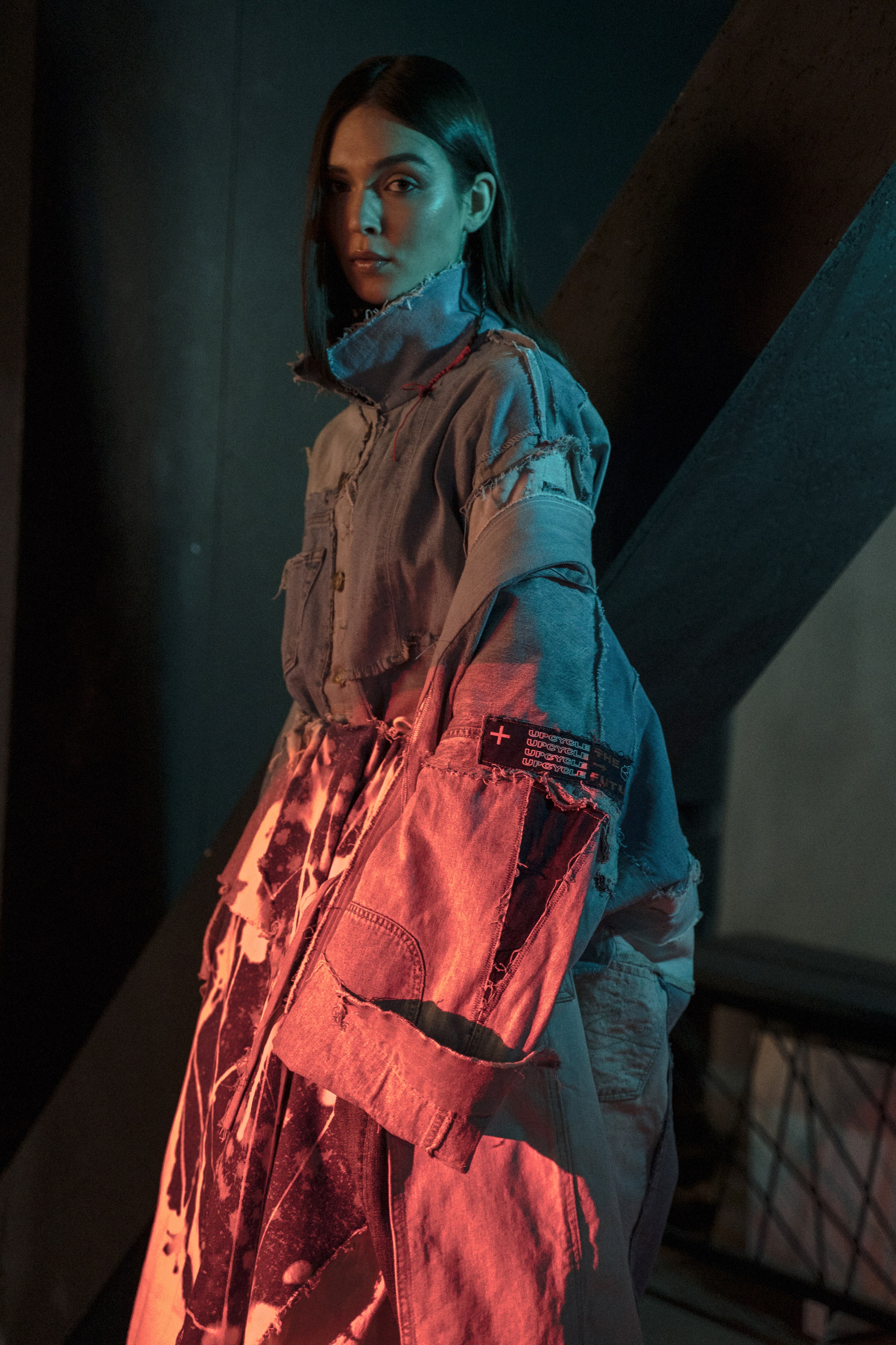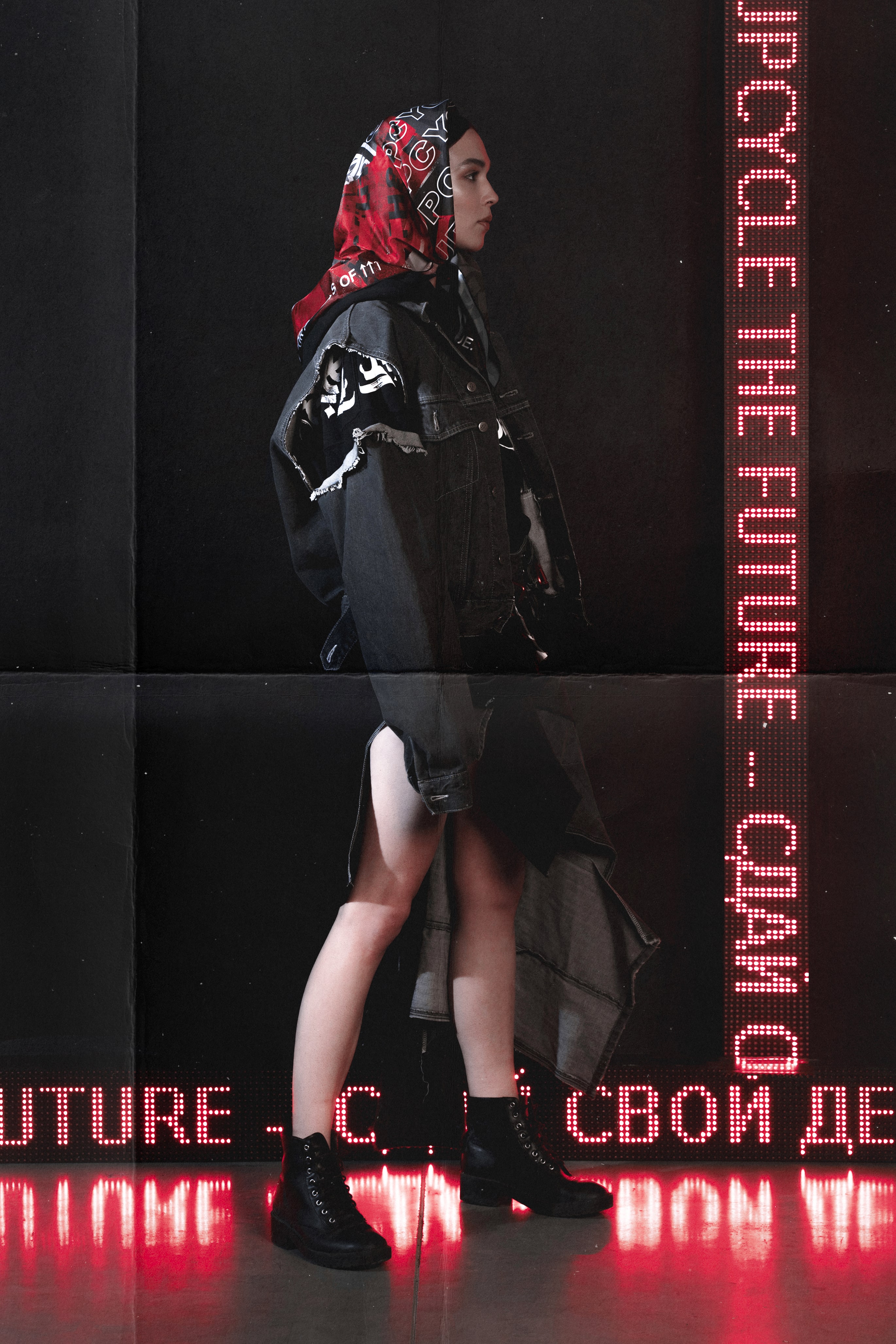 В коллекцию вошли футболки, худи, кимоно, шарфы, кепки и другие аксессуары. Материалы для проекта собирали с 18 октября — на втором этаже универмага находился стенд, куда все желающие приносили ненужную джинсовую одежду. За одну неделю там собрали 487 вещей.
