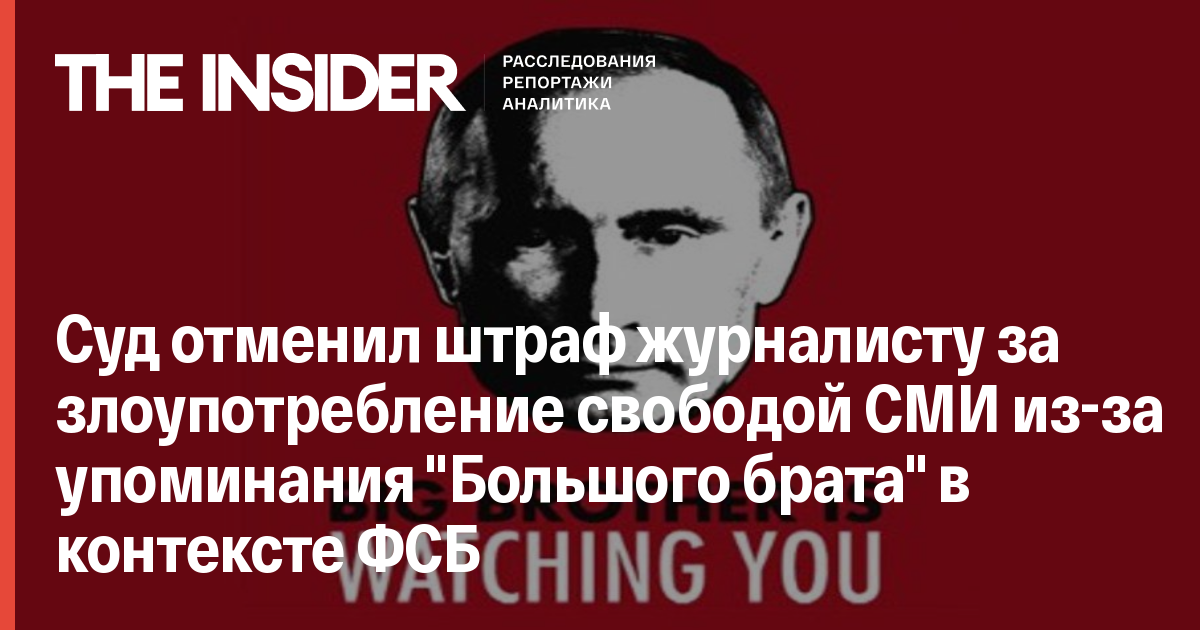 Суд отменил штраф журналисту за злоупотребление свободой СМИ из-за упоминания "Большого брата" в контексте ФСБ