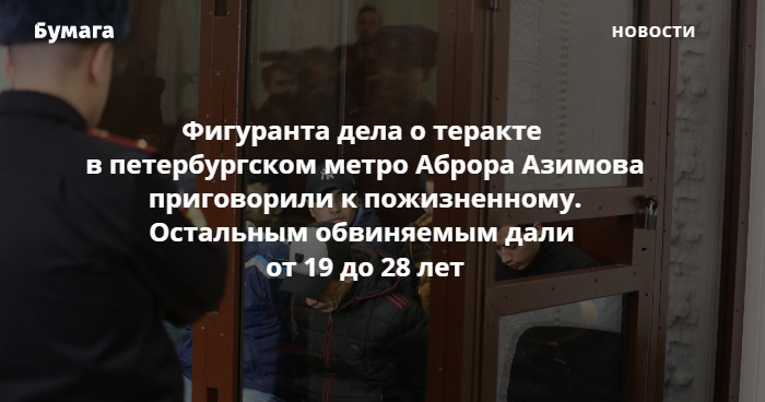 Аброра Азимова, которого называли организатором теракта в метро, приговорили к пожизненному заключению.