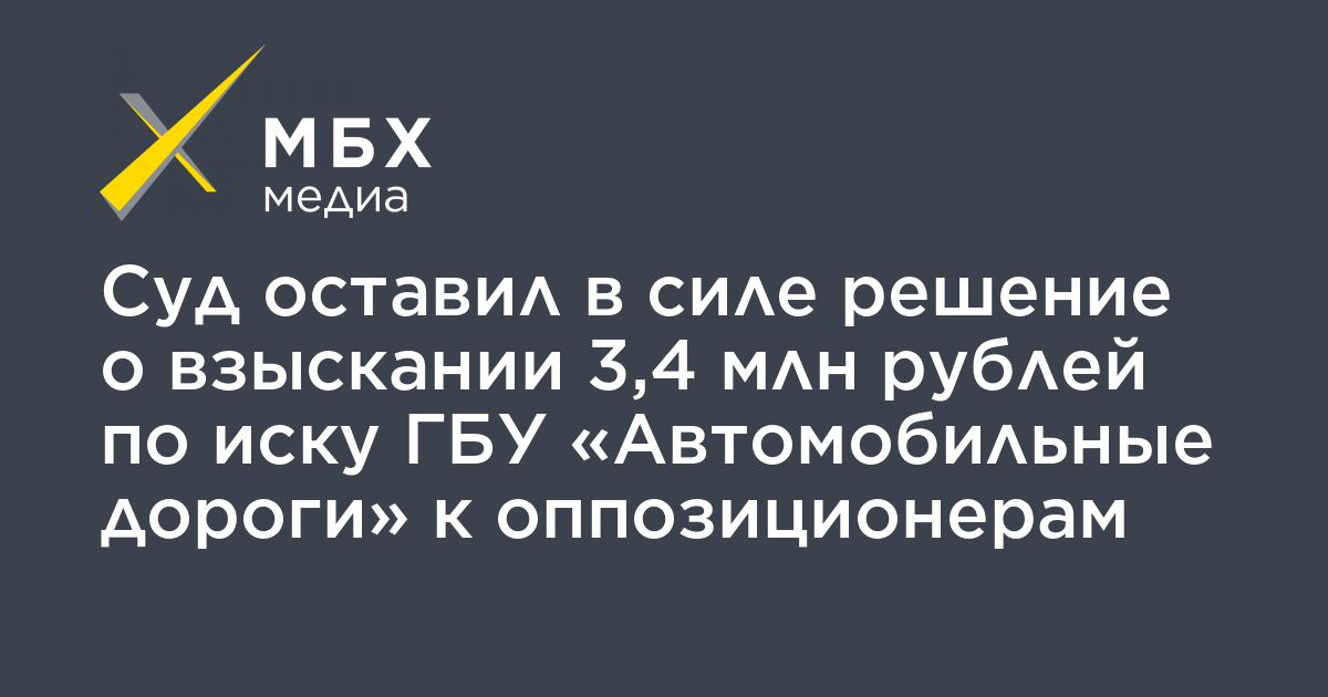 Суд оставил в силе решение о взыскании 3,4 млн рублей по иску ГБУ «Автомобильные дороги» к оппозиционерам
