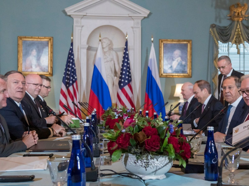 В Вашингтоне Лавров провел две встречи. Сначала он встретился с Помпео, а затем в присутствии главы госдепартамента провел переговоры с Трампом в Белом доме. Госсекретарь признал, что двусторонние связи Москвы и Вашингтона «конечно, сложные». «Не секрет, что у нас разные взгляды на некоторые вещи, и наивно полагать, что можно в одночасье добиться взаимопонимания по ключевым вопросам, — согласился глава российскиого МИДа. — Но так, наверное, было всегда в большей или меньшей степени. Никогда не бывает 100% совпадения позиций». По его словам, «дипломатия в том и заключается, чтобы искать такие решения, которые без ущерба для принципиальных интересов каждой из сторон будут все-таки позволять избегать конфликтов и, наоборот, продвигать конструктивное взаимодействие».