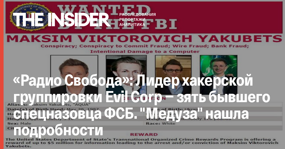 «Радио Свобода»: Лидер хакерской группировки Evil Corp — зять бывшего спецназовца ФСБ. "Медуза" нашла подробности
