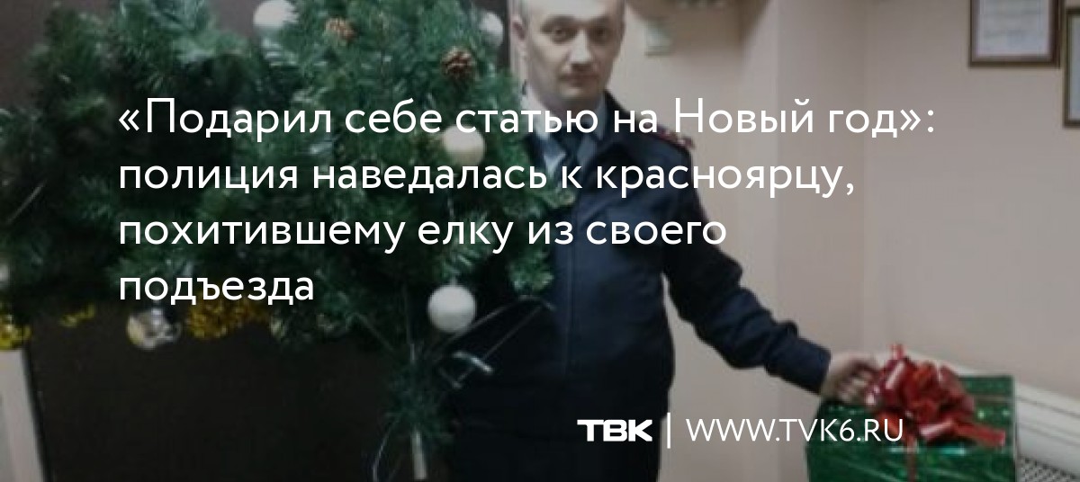 Забавная кража произошла 10 декабря в доме по ул. Калинина, 37. 20-летний красноярец решил обзавестись новогодней красавицей и не придумал ничего лучше, как украсть ее из подъезда.