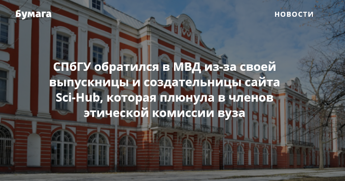 Санкт-Петербургский государственный университет обратился в полицию из-за ситуации со своей выпускницей и основательницей сайта с научными публикациями Sci-Hub Александрой Элбакян. Об этом сообщается на сайте вуза в разделе «Виртуальная приемная». Внимание на публикацию обратила «Медуза».