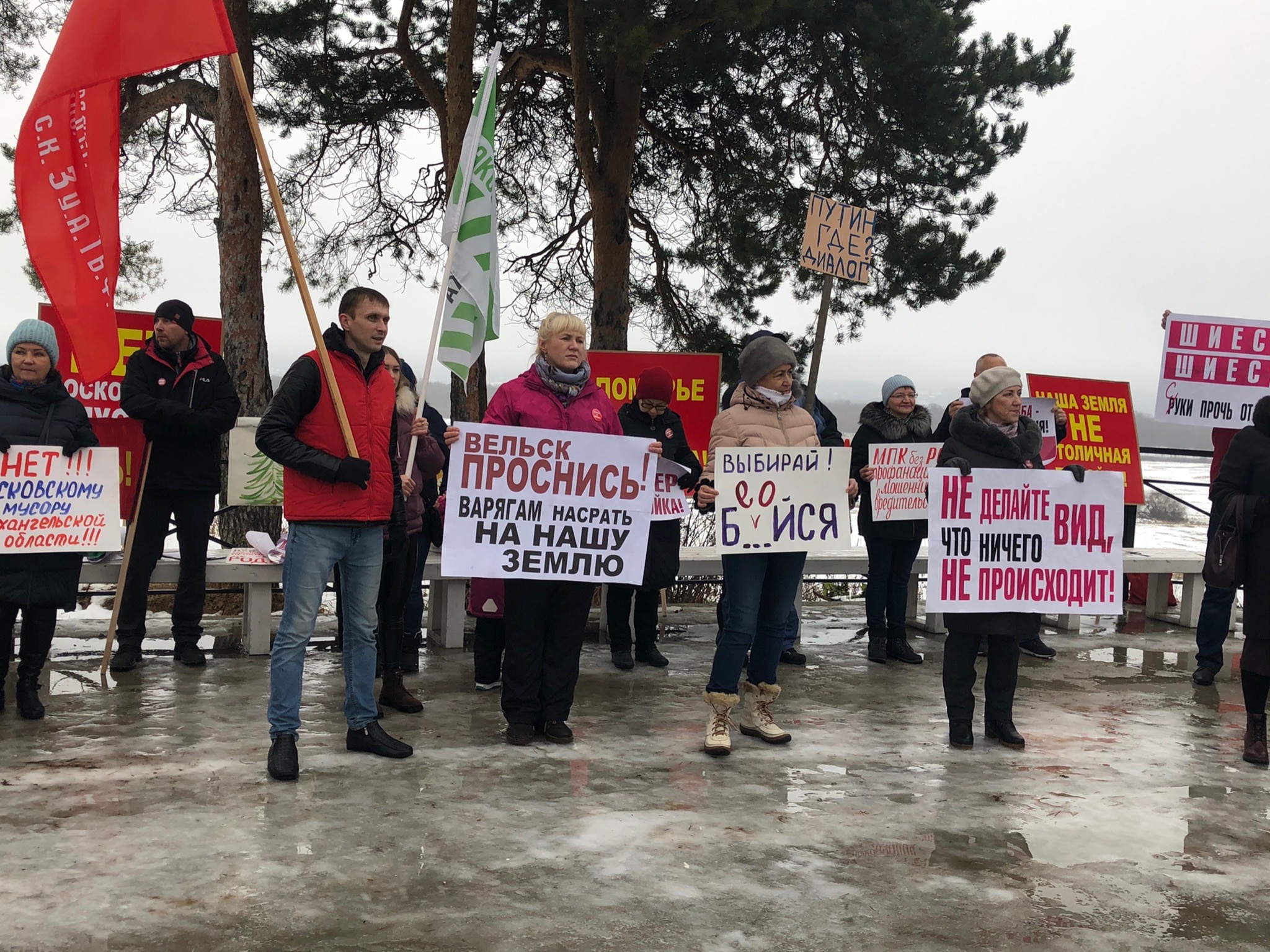 Более 100 жителей села в Архангельской области вышли на митинг против свалки в Шиесе