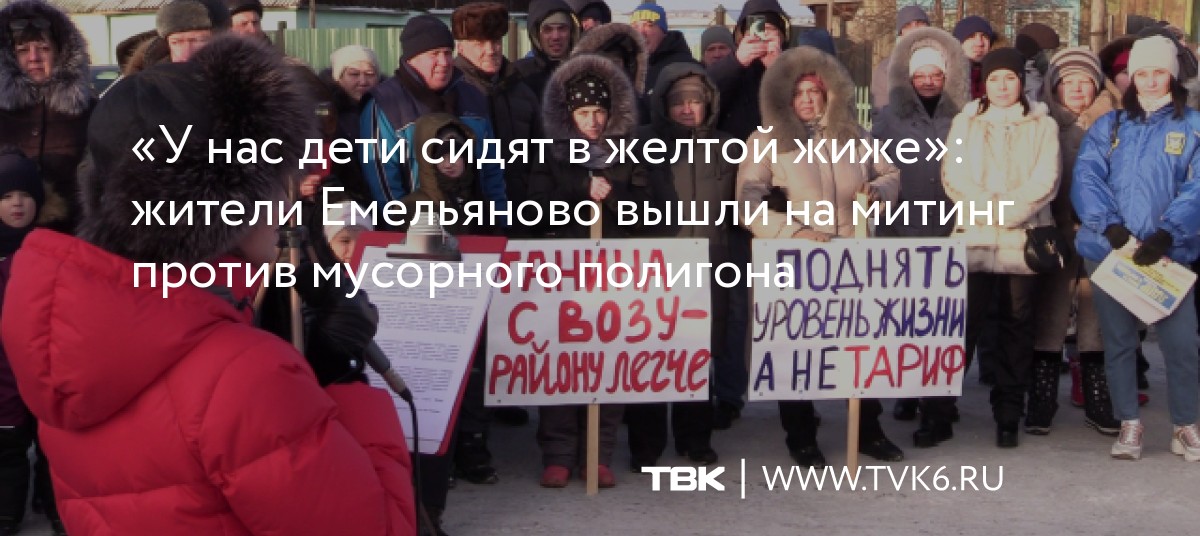 Жители п. Емельяново Красноярского края заявили не хотят соседствовать с огромным мусорным полигоном. По словам сельчан, восточная часть района с большим количеством деревень, садовых товариществ постепенно превращается в неблагополучную экологическую зону. Емельяновцы собрались 15 декабря на согласованный митинг и высказывались о проблемах с водой в поселке. Большинство уверено – строительство мусорного полигона здесь только усугубит ситуацию