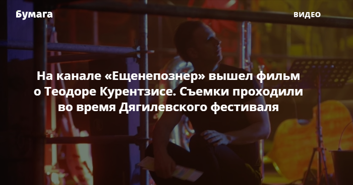 На ютьюб-канале «Ещенепознер» вышел фильм о всемирно известном дирижере Теодоре Курентзисе, который в августе 2019 года переехал в Петербург. Съемки проходили в мае, во время последнего Дягилевского фестиваля, когда его художественный руководитель Курентзис еще жил и работал в Перми.