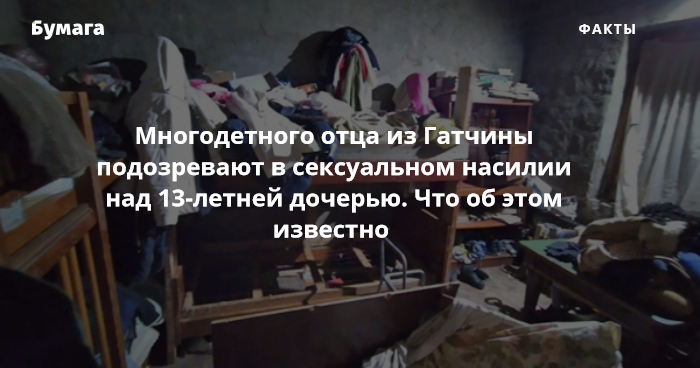 Многодетного отца из деревни Химози под Гатчиной подозревают в сексуальном насилии над 13-летней дочерью, которое продолжалось семь лет. В доме семьи полиция нашла склад оружия — с винтовками, пистолетами и бронежилетами с маркировкой ФСБ. Предположительно, дети проходили боевую подготовку. Возбуждено уголовное дело.