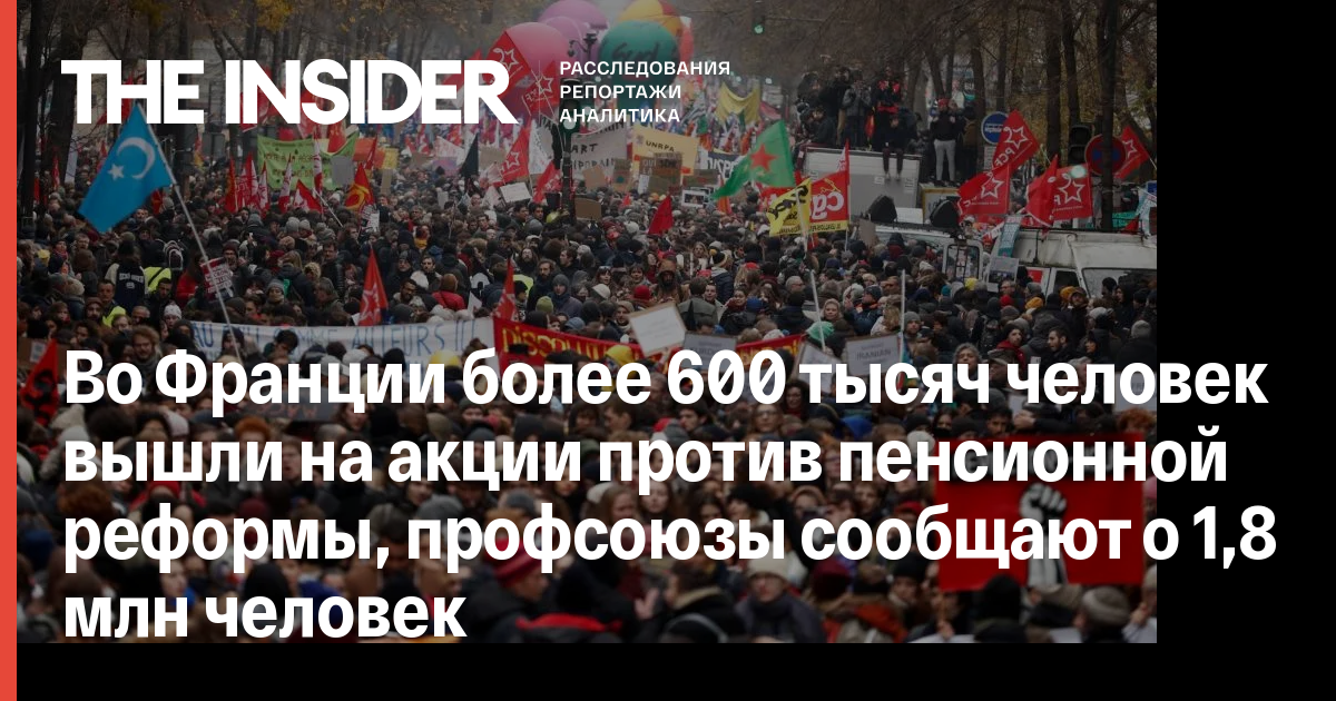 Во Франции более 600 тысяч человек вышли на акции против пенсионной реформы, профсоюзы сообщают о 1,8 млн человек