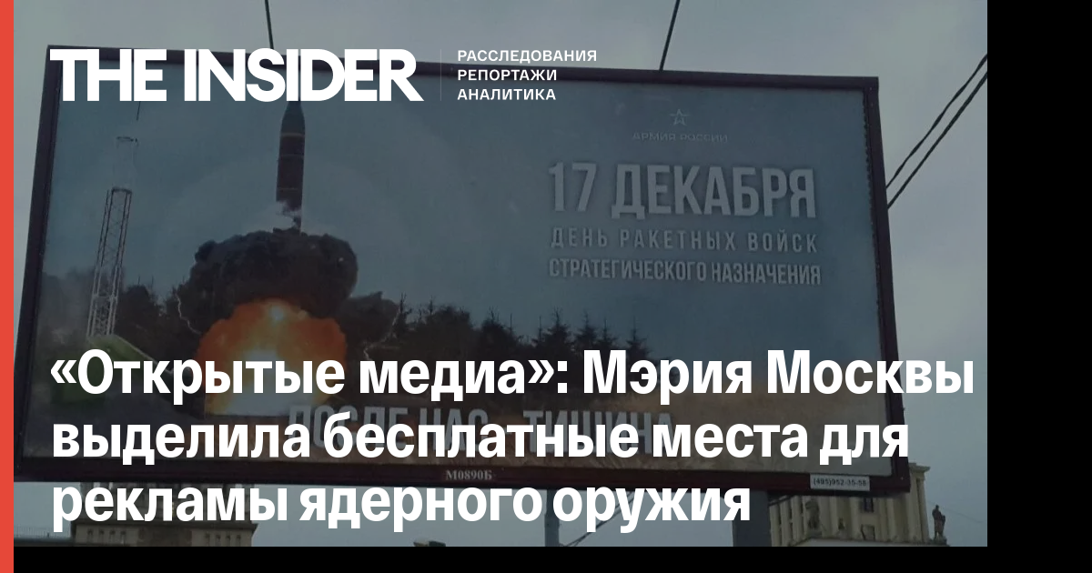 «Открытые медиа»: Мэрия Москвы выделила бесплатные места для рекламы ядерного оружия