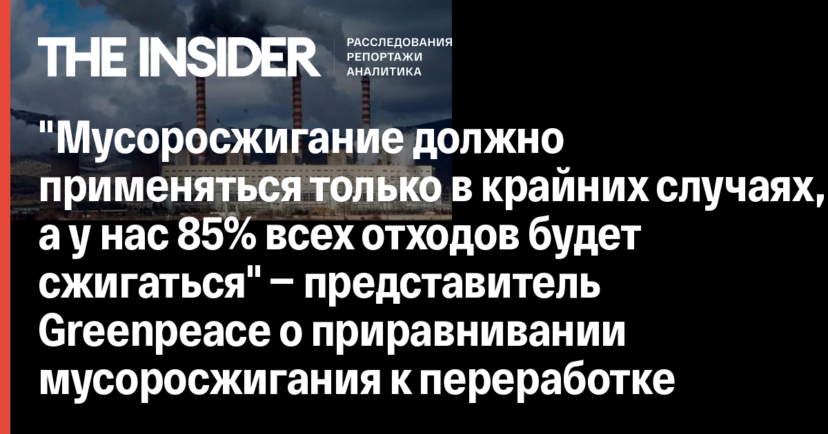 "Мусоросжигание должно применяться только в крайних случаях, а у нас 85% всех отходов будет сжигаться" — представитель Greenpeace о приравнивании мусоросжигания к переработке