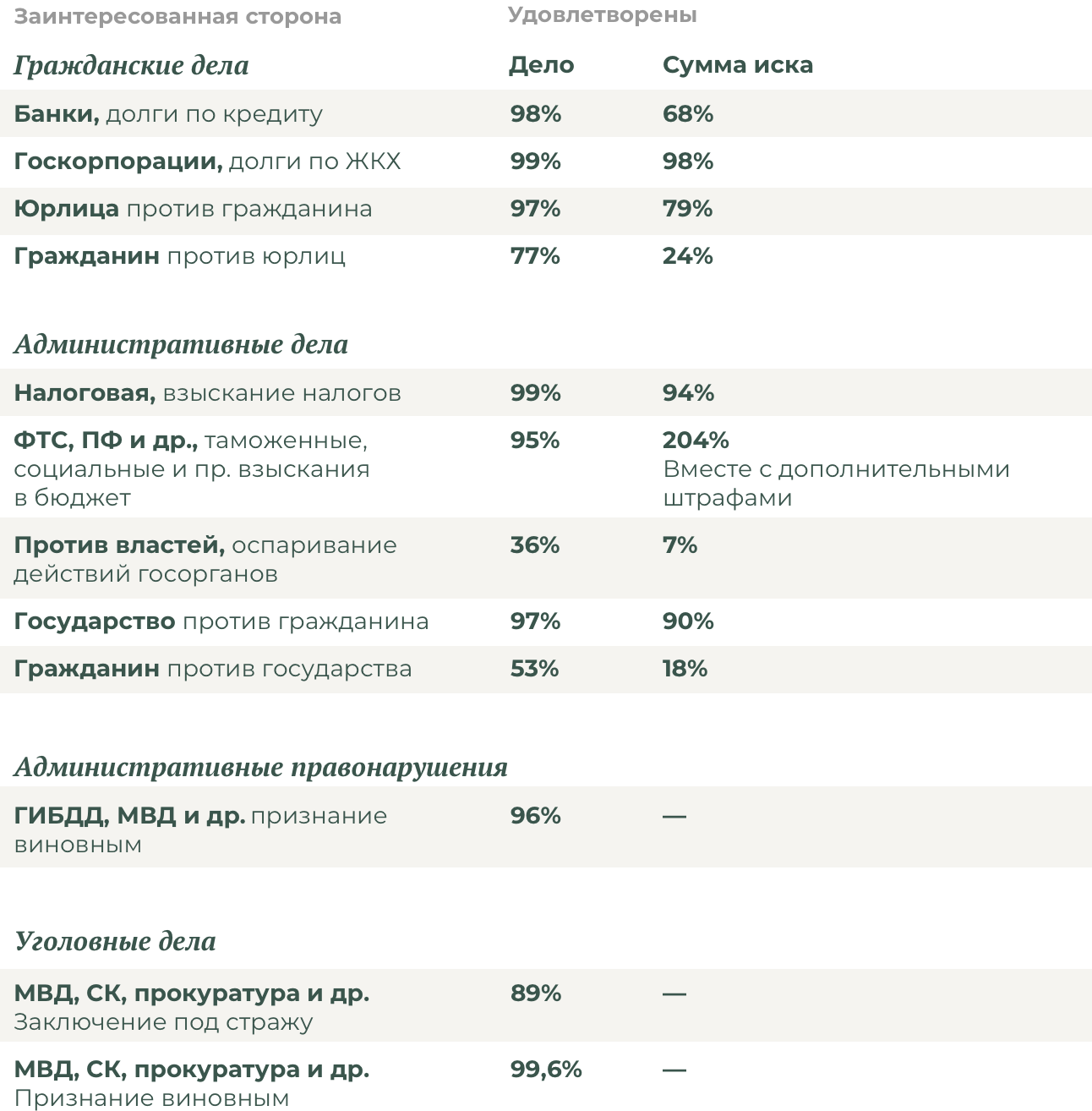 Вероятность, что суд удовлетворит претензии бюрократии к гражданину, — более 95%