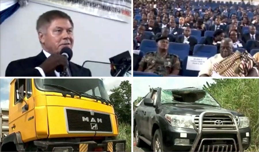 Российские СМИ не обратили на это событие никакого внимания , показывает анализ выдачи поисковых систем Google и Яндекс на тот период. И встрепенулись только в понедельник, когда сообщили, что по пути с конференции Лебедев попал в ДТП недалеко от городка Цито. По официальной версии, грузовик подрезал кортеж судьи. Лебедев был ранен, и медикам потребовался почти час, чтобы вытащить потерпевшего из машины. Его доставили в интенсивную терапию военного госпиталя Аккры, где состояние судьи стабилизировали. 18 сентября Лебедева отправили в Москву спецбортом МЧС. По итогам инцидента судья получил вывих ключицы, ушибы позвоночника и ребер.