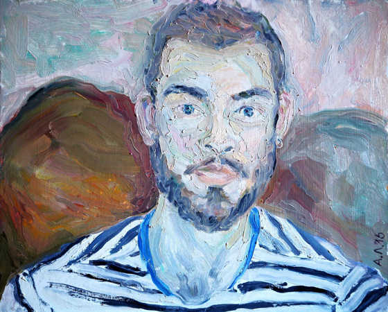 © Алена Лёвина Сережа. Картон, масло. 2016 — Когда наступила твоя самоидентификация как художника и когда ты впервые начала продавать работы?