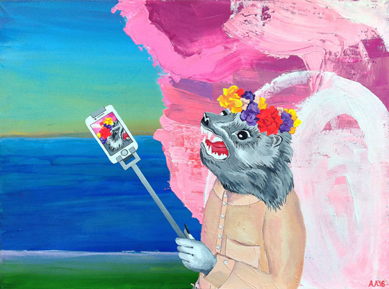 © Алена Лёвина Росомаха в темноте. Акрил, холст. 2016. Из серии «Гаджетизация» — Как ты сама прослеживаешь изменения в своих темах?