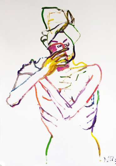 © Алена Лёвина Автопортрет. Бумага, акрил. 2016 — Как ты считаешь, сколько лет нужно России, чтобы пережить это?