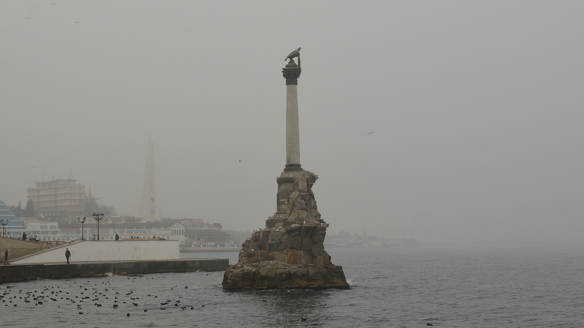 Около 10:00 по местному времени туман частично рассеялся и с района проспекта Острякова просматривались Южная бухта и район железнодорожного вокзала.