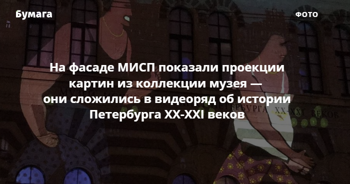 На фасаде МИСП показали проекции картин из коллекции музея — они сложились в видеоряд об истории Петербурга XX-XXI веков