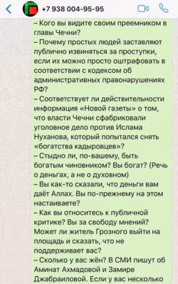 2. Вы неоднократно говорили, что являетесь пехотинцем президента Владимира Путина и "Россия и Чечня едины навсегда". В курсе ли вы, что УК и КоАП РФ не предусматривают такой санкции, как публичные извинения? Вероятно, вы сошлётесь на обычаи, тогда см. пункт 1.