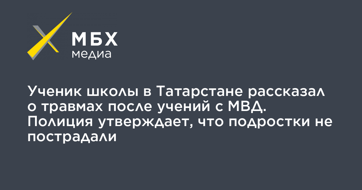 Некоторые из учащихся Новотроицкой средней школы в Татарстане, которые играли роль «активистов» в учениях МВД по разгону митингов, получили небольшие травмы. Об этом рассказал «МБХ медиа» один из школьников на условиях анонимности. МВД при этом утверждает, что в качестве «митингующих» были полицейские, и никто из подростков не пострадал.