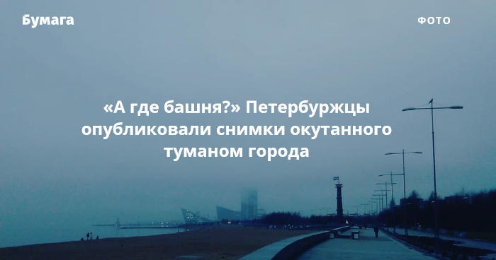 Вечером 23 декабря Петербург накрыл туман, который поглотил последние этажи высотных зданий, в том числе «Лахта Центра». Очевидцы в соцсетях опубликовали фотографии явления.